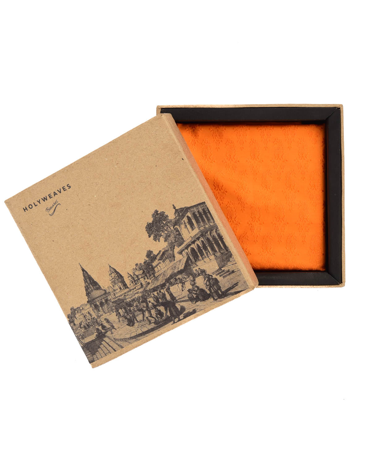 Orange Tanchoi Handwoven Pure Silk Pocket Square For Men