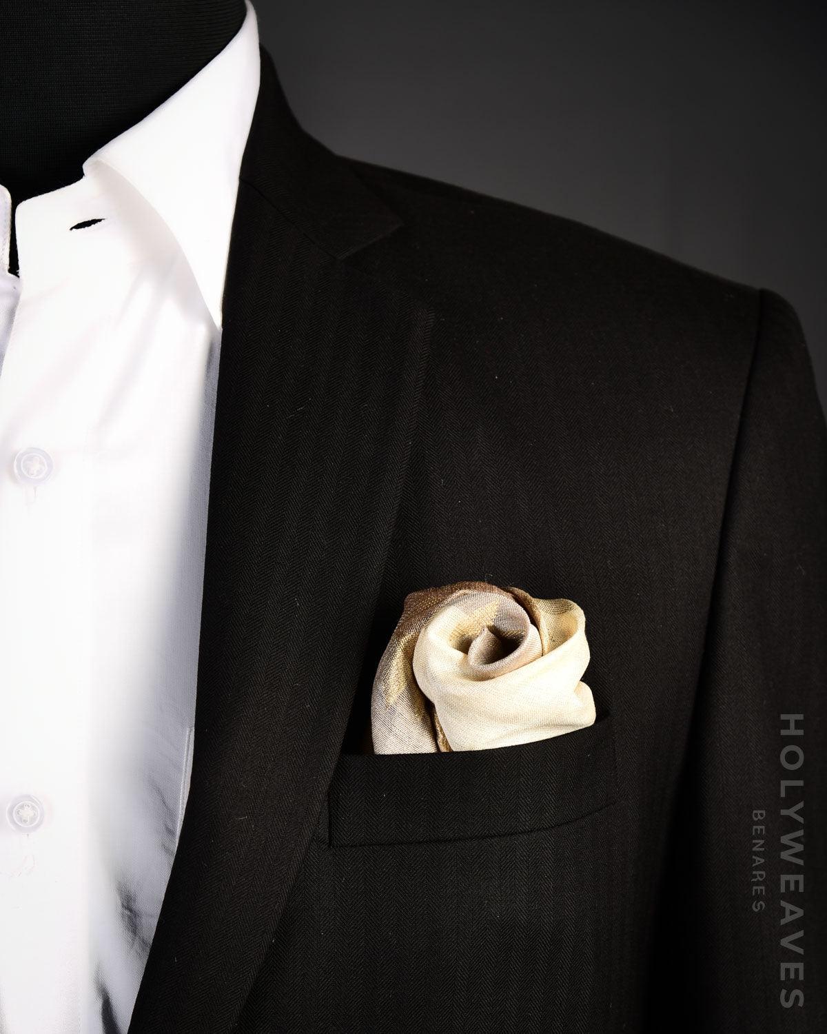 Cream Beige Banarasi Gold Zari Geometrical Kadhuan Brocade Handwoven Cotton Silk Pocket Square