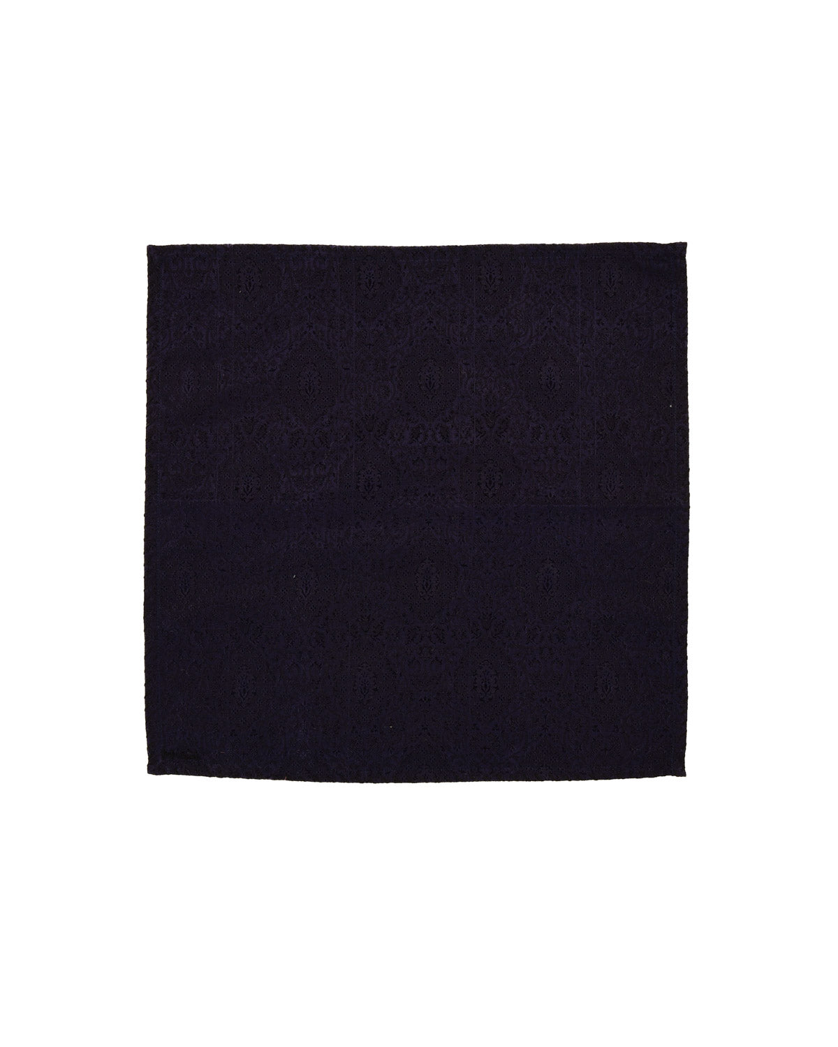 Elegant and versatile, this handwoven pocket square in navy blue features a refined damask pattern rendered in a subtle Tanchoi weave. The silk-wool blend offers a graceful drape with a quiet sheen, while the intricate tonal design reveals itself beautifully in movement and fold.