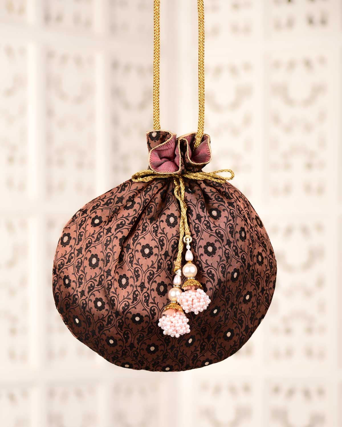 Brown Banarasi Resham Brocade Silk Potli 11"x10"