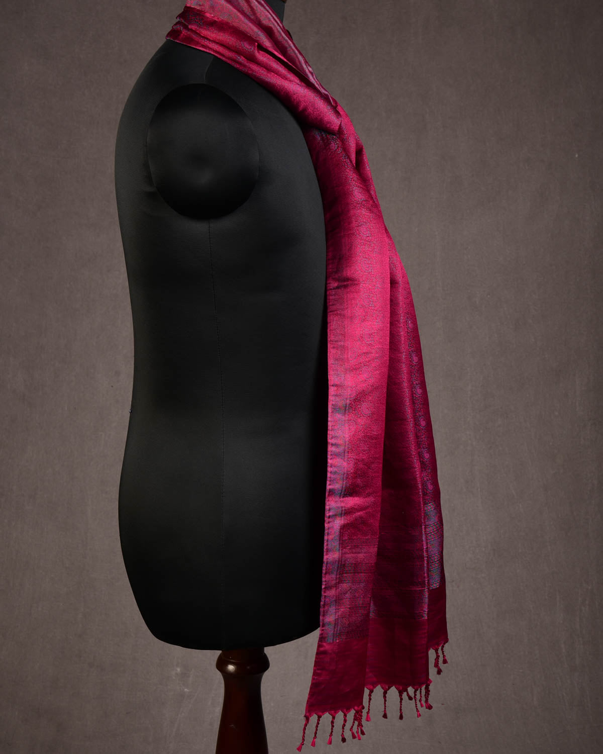 Metallic Maroon Tehra Paisley Jamawar Handwoven Silk Unisex Scarf 80"x22"