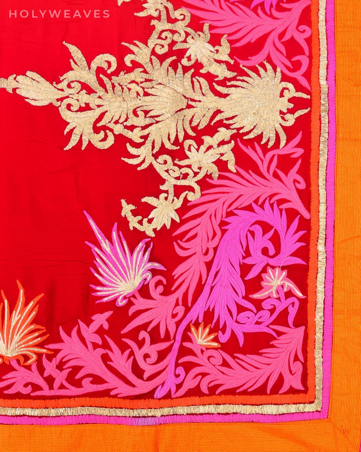 Red Hand-embroidered Georgette Saree