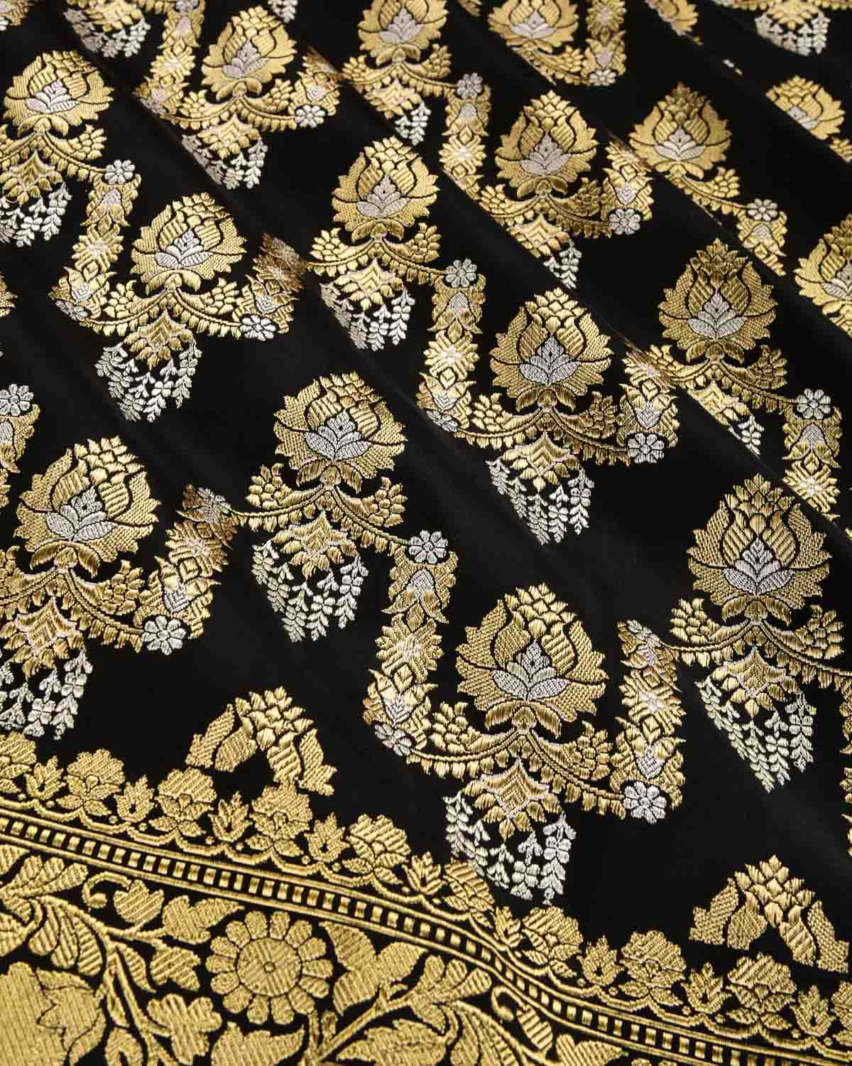 Black Banarasi Sona-Rupa Zari Jaal Kadhuan Brocade Handwoven Katan Silk Saree