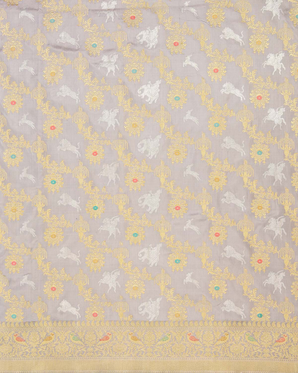 Gray Banarasi Rajaji Shikargah Kadhuan Brocade Handwoven Katan Silk Saree