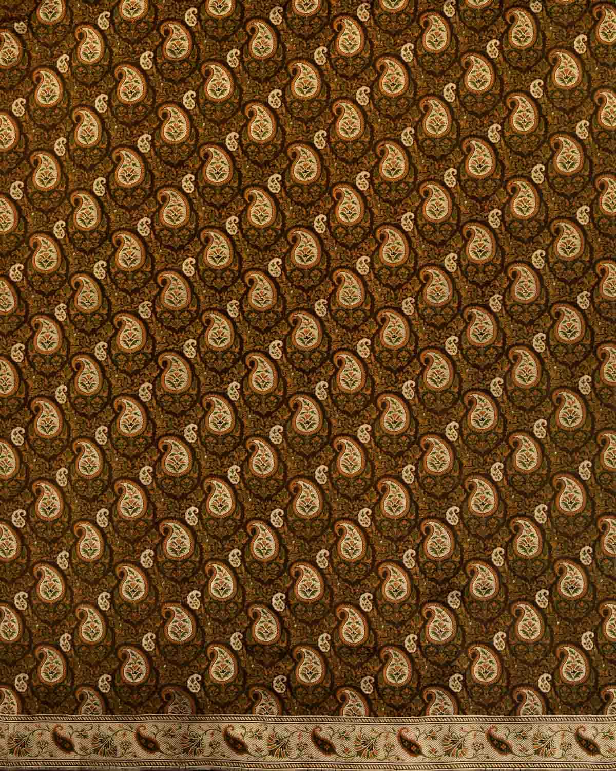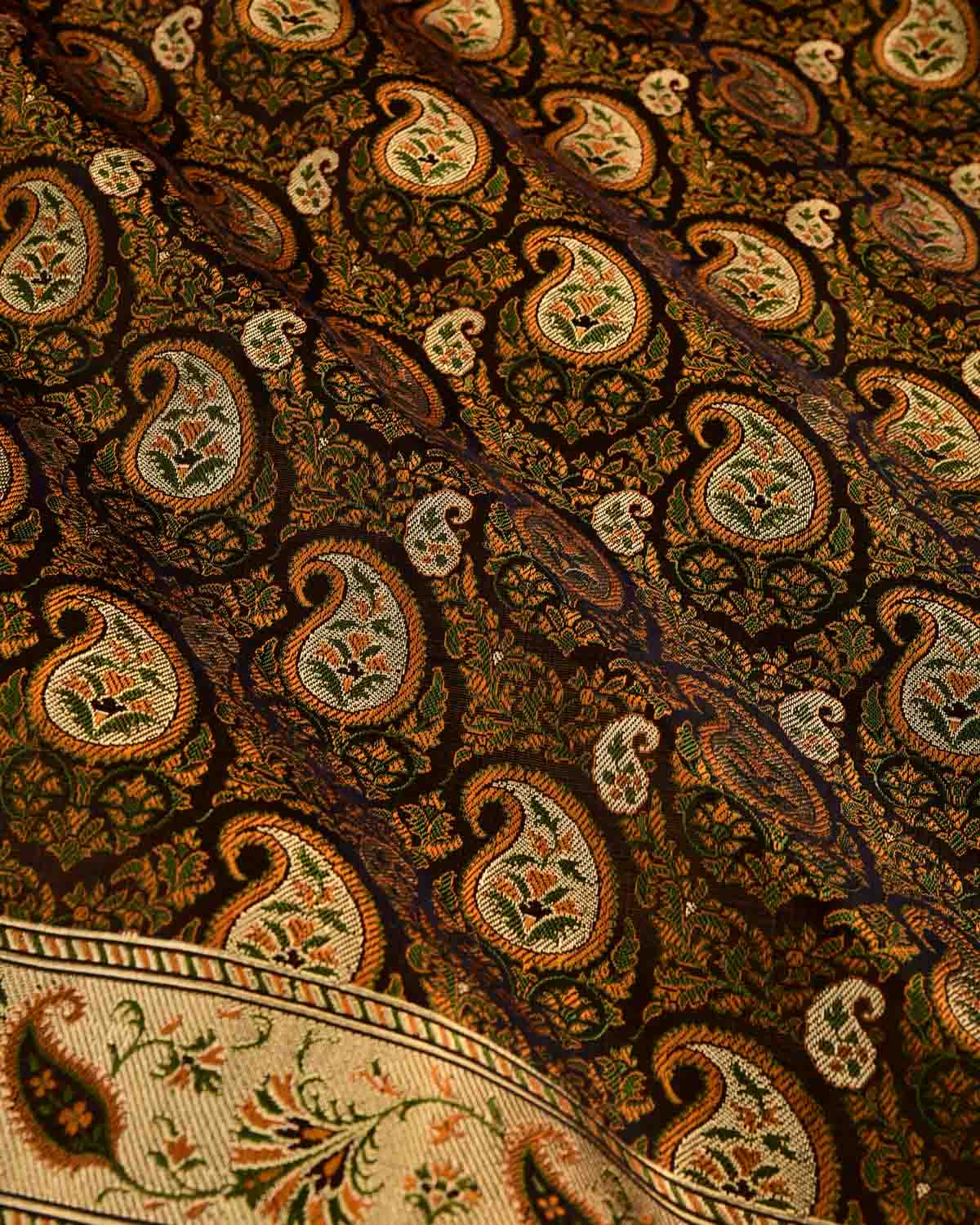 Black Banarasi Tehri Paisley Satin Jamawar Tanchoi Brocade Handwoven Katan Silk Saree with Gold Zari Accents