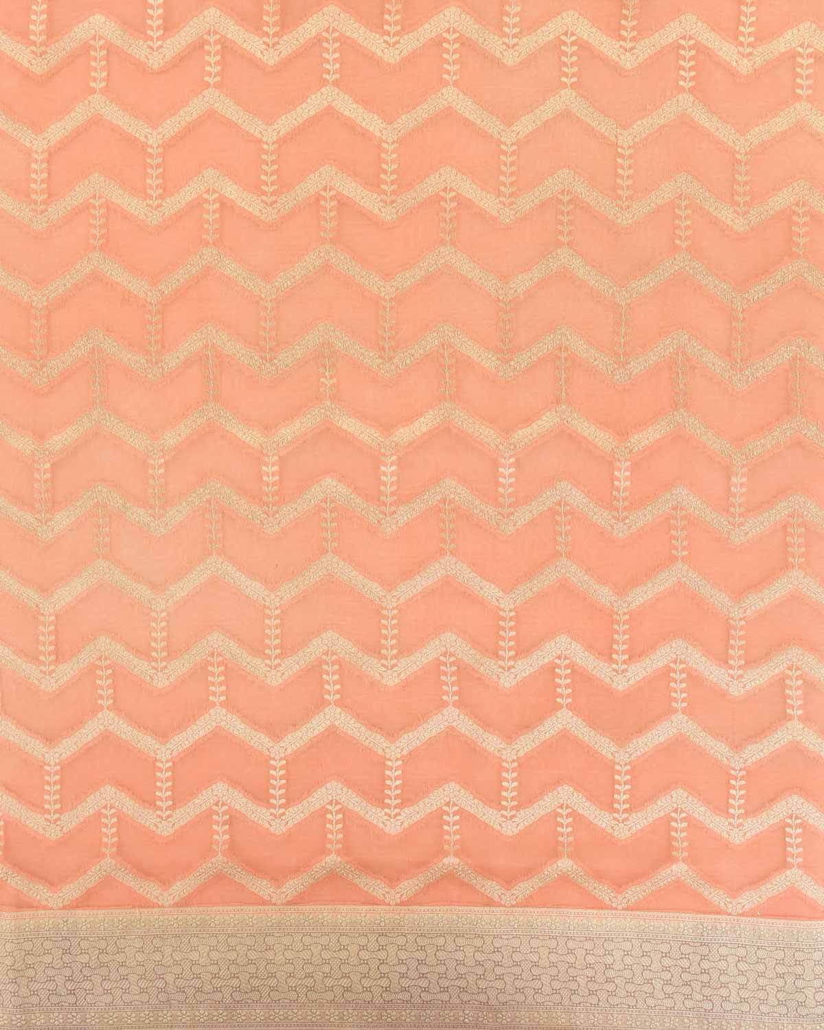 Peach Banarasi Gold Zari Geometric Cutwork Brocade Woven Kora Silk Saree with Contrast Border Pallu