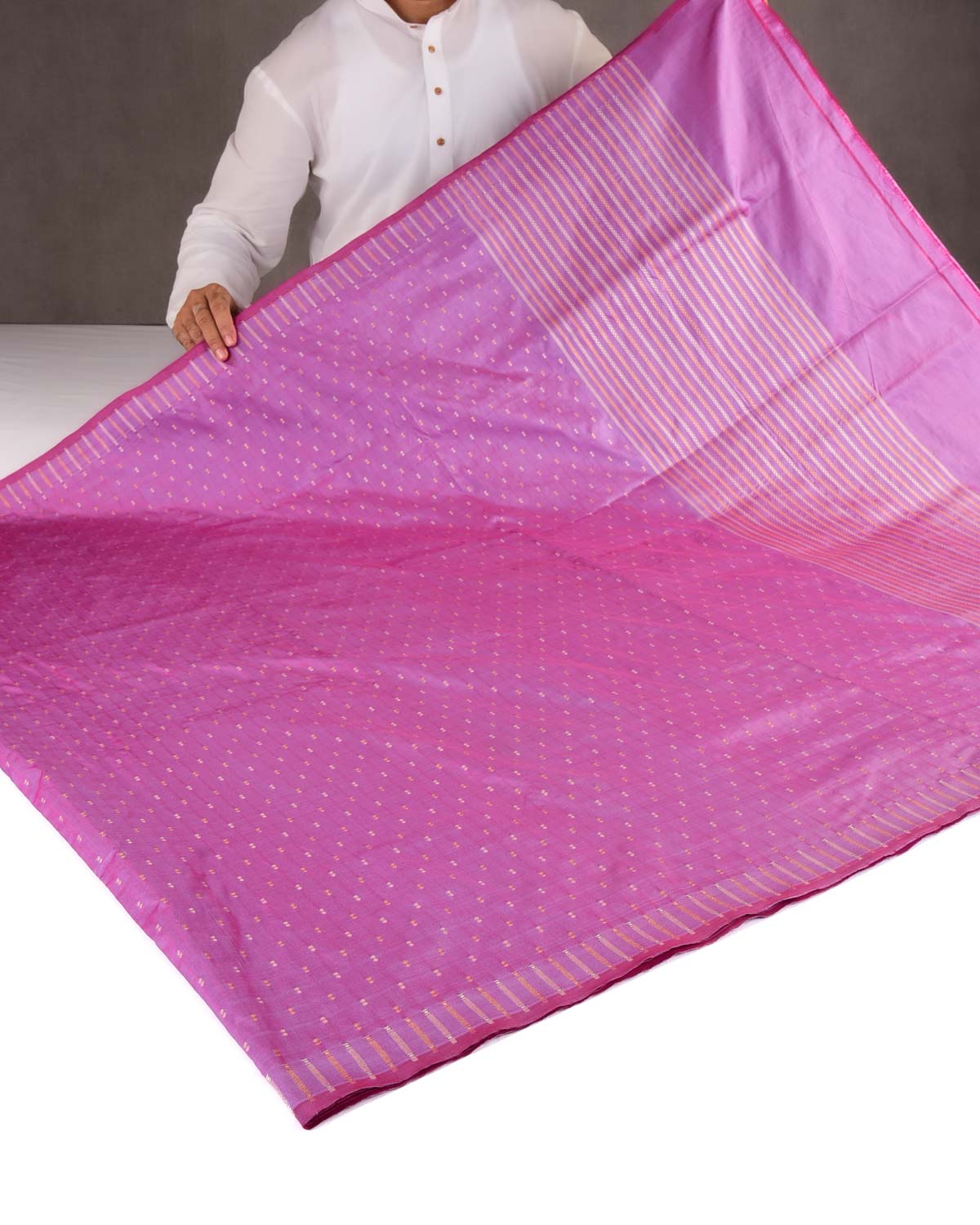 Shot Mauve Banarasi Gold & Silver Zari Duet Polka Buti Cutwork Brocade Handwoven Katan Silk Saree with Gita Shlok Blouse