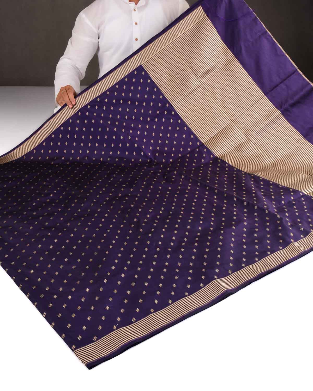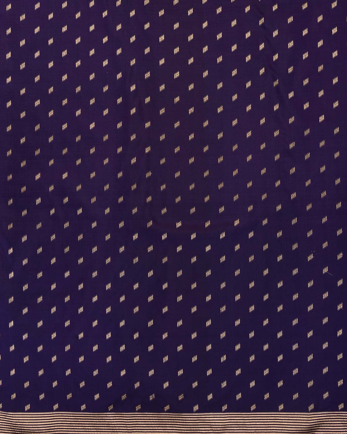 Navy Blue Banarasi Gold Zari Contemporary Cutwork Brocade Handwoven Katan Silk Saree with Spider Web Blouse Piece