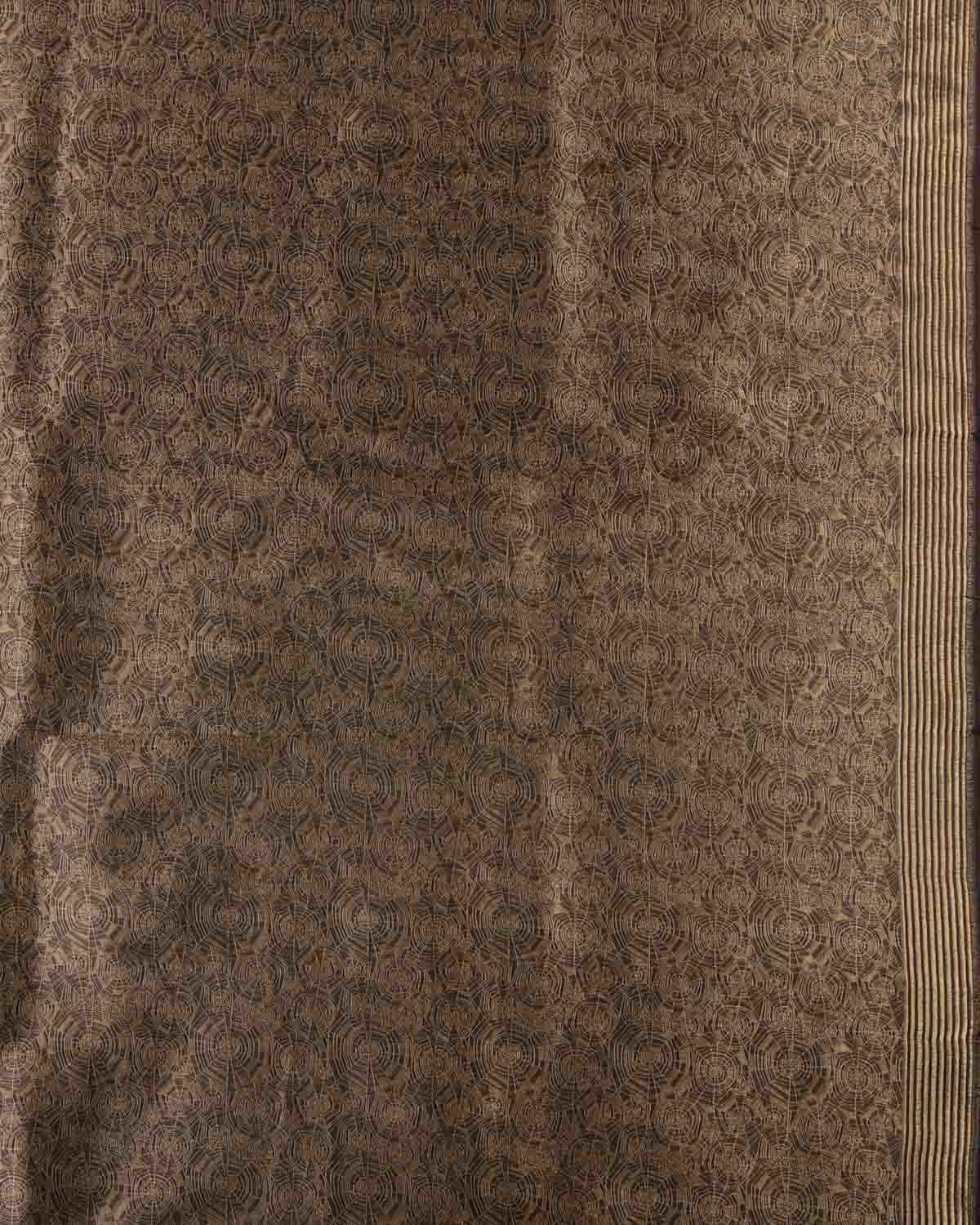 Stone Gray Banarasi Gold Zari Contemporary Cutwork Brocade Handwoven Katan Silk Saree with Spider Web Blouse Piece