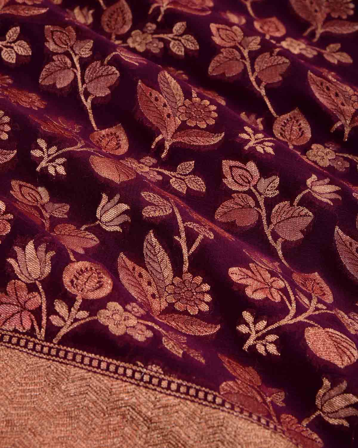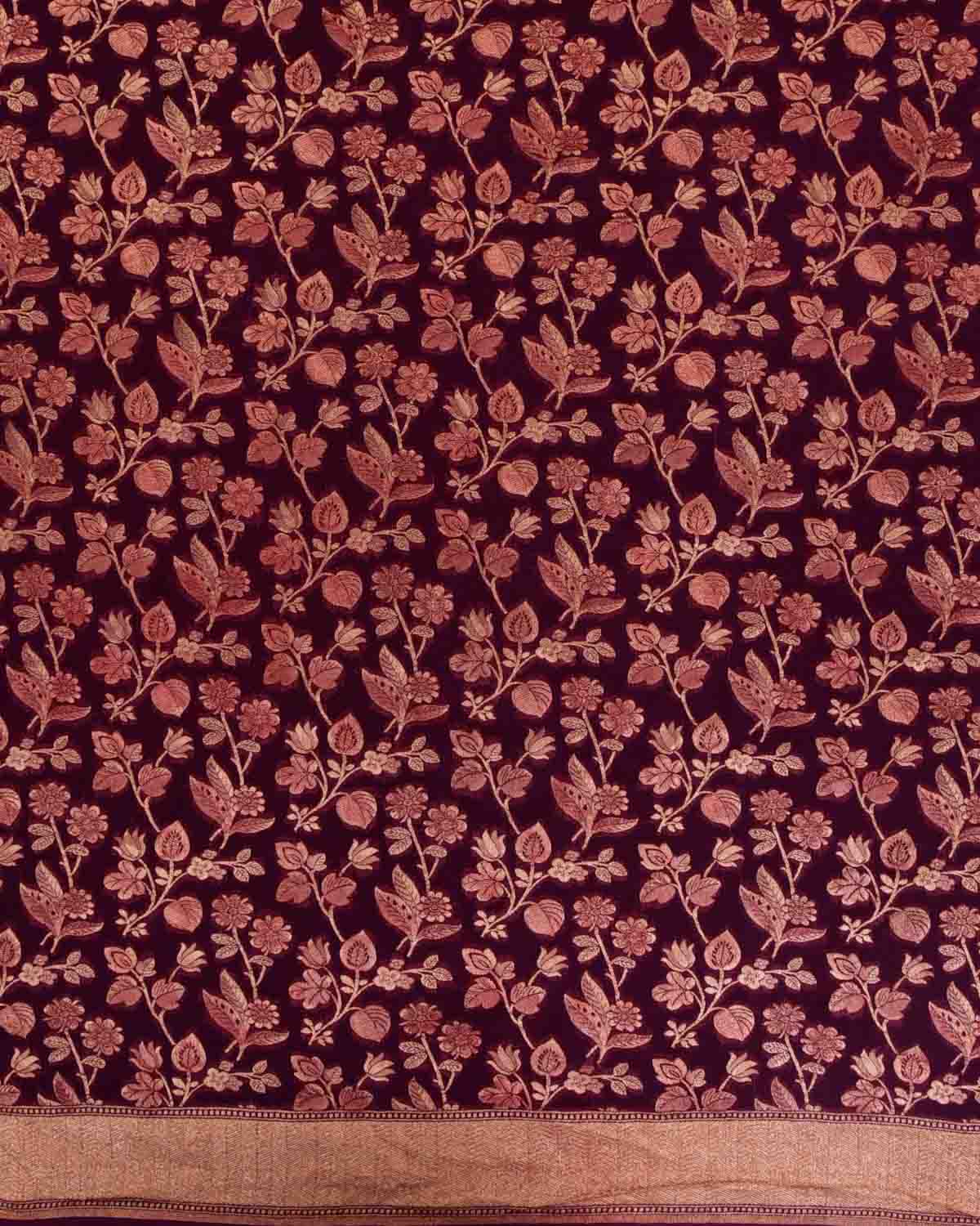 Burgundy Hand Brush Antique Zari Jaal Cutwork Brocade Handwoven Khaddi Georgette Banarasi Saree