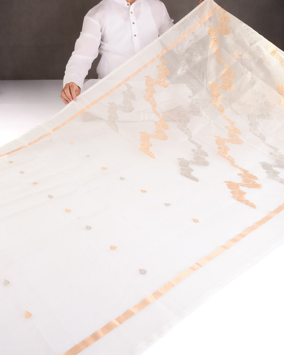 • Color: Ivory White with Gold & Silver Zari