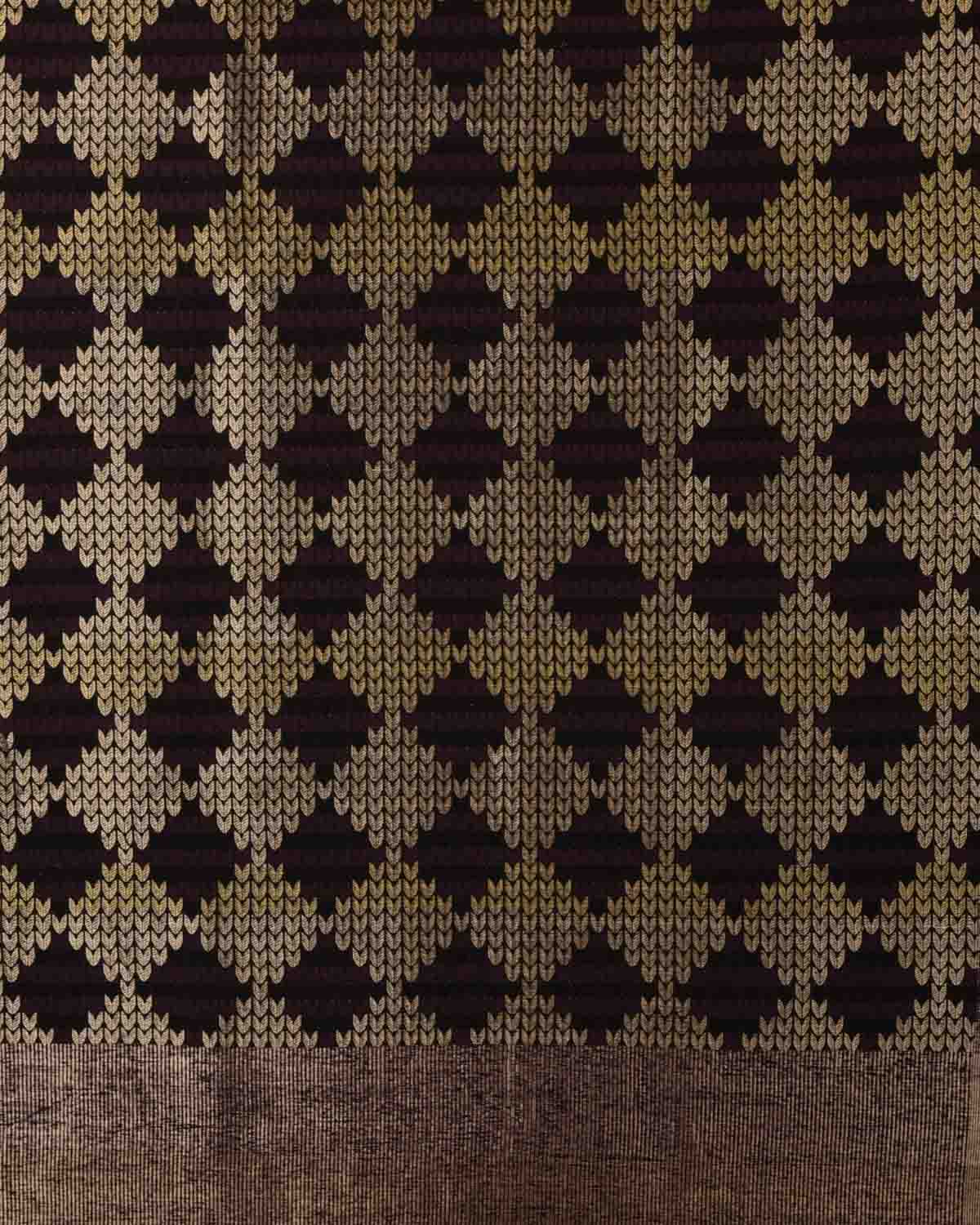 Black Banarasi Tehra Herringbone Brocade Handwoven Silk Wool Unisex Dress Shawl